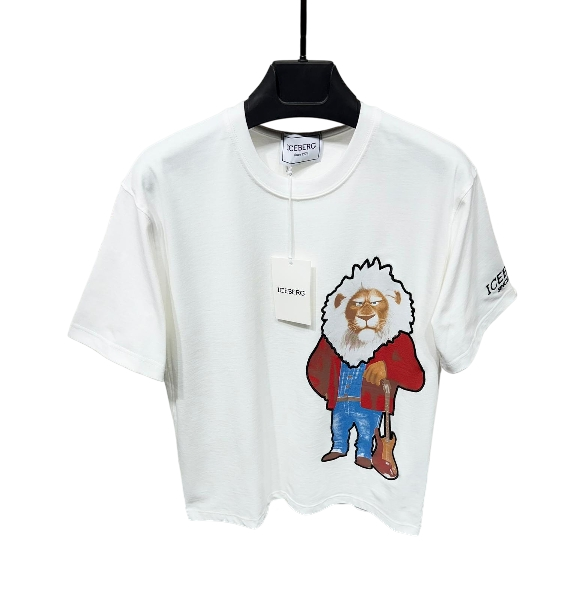 Unleash your wild side with this bold and stylish t-shirt from Iceberg. Crafted from premium soft cotton, this crisp white tee features a unique, eye-catching graphic of a cool lion dressed in casual streetwear and holding a guitar — perfect for music lovers and trendsetters alike. The relaxed fit ensures all-day comfort, while the subtle Iceberg branding on the sleeve adds a touch of designer flair. Whether you’re hitting the streets or hanging out with friends, this tee brings personality and attitude to your everyday wardrobe.