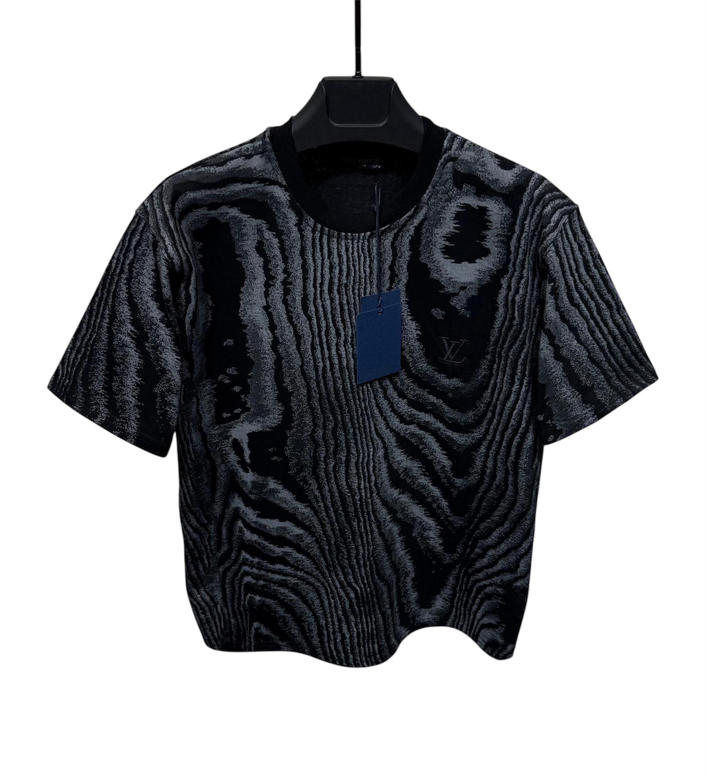 Turn heads with effortless luxury. Featuring an abstract wave-textured design and subtle LV embroidery, this tee redefines modern sophistication with artistic flair.